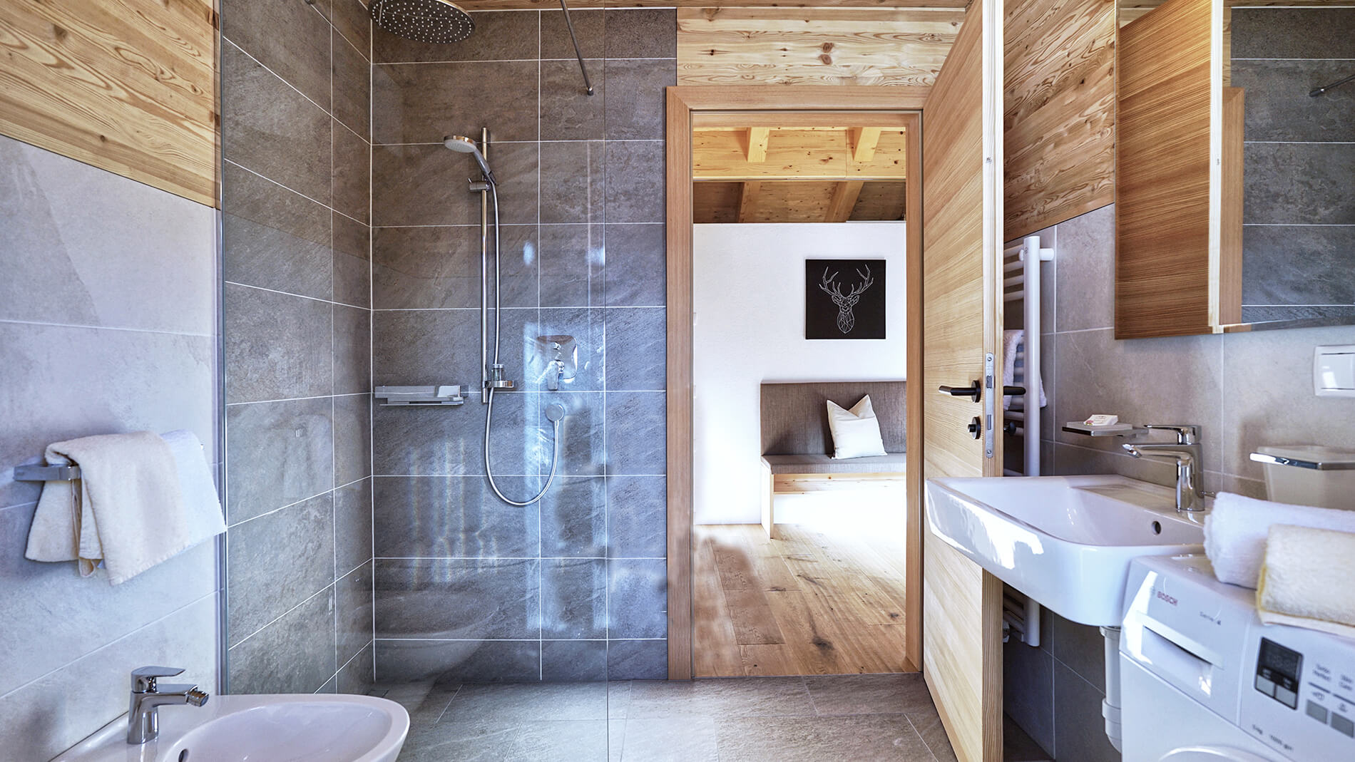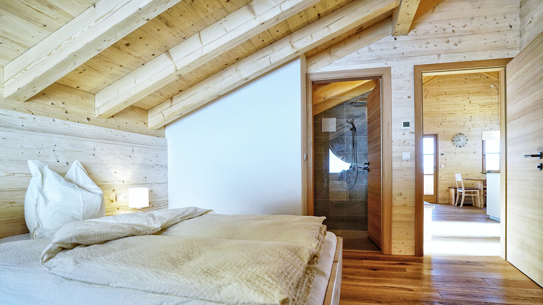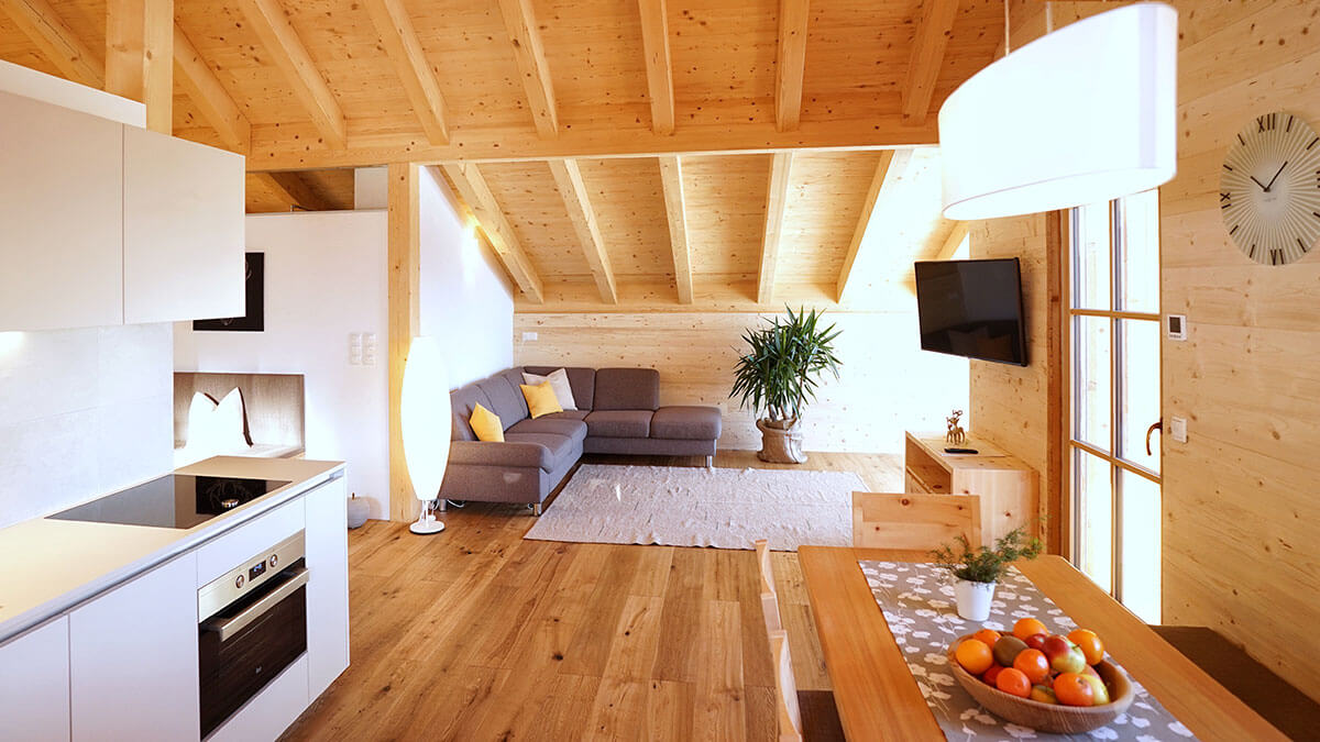 The sun rises and lights up the mountain world. The air is filled with joyful birdsong. The early mist clears and a new day begins. The soft scent of Swiss pine welcomes in a beautiful morning. Looking out of the picture windows, you can enjoy this lovely natural setting bathed in soft early-morning light. The view stretches as far as the eye can see, over the Puster Valley and to the surrounding peaks.